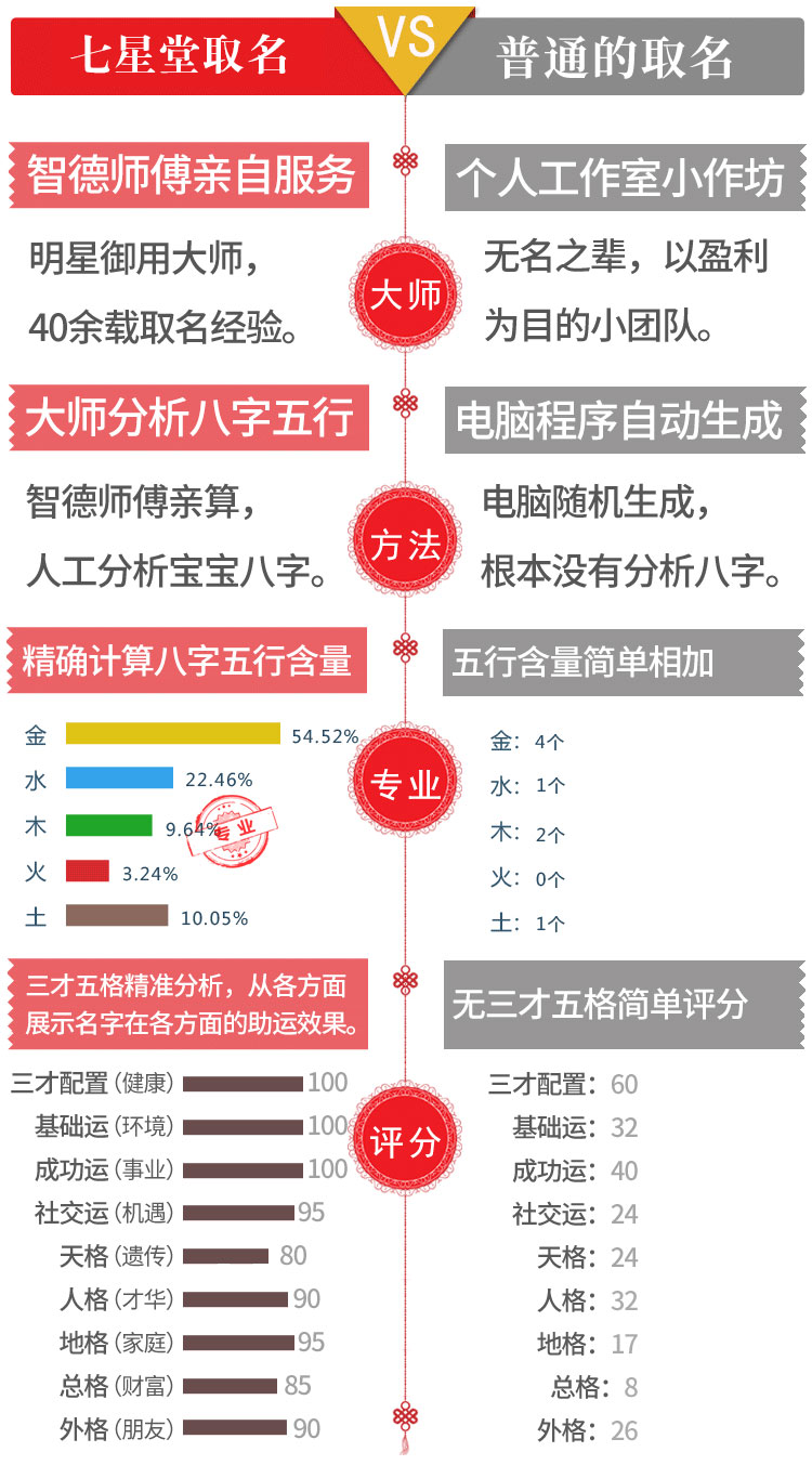 明星御用大师【智德师傅】在线亲自服务,人工分析宝宝八字命局、五行旺缺、字音字律、诗词典籍等,以及综合父母需求,取适合宝宝的吉祥好名字。七星堂·取名优势